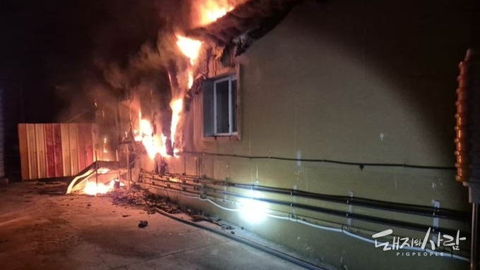 월요일 저녁 충남 공주에서 돈사 화재 사고가 일어났습니다.