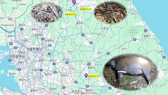 같은 날 원주 감염멧돼지에 더해 화천에서도 감염멧돼지 2마리(#4279, 4280)가 새롭게 추가되었습니다. 모두 폐사체입니다. 이로써 지난 10월 28일 이래 ASF 감염멧돼지 발견 마릿수는 23마리로 늘어났습니다. 발견시군은 화천과 춘천, 원주 3개로 증가했습니다.