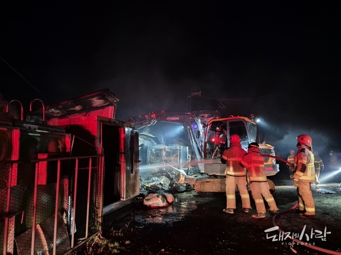 이 과정에서 강파이프조 돈사 2개 동(1,134㎡)이 소실되고 모돈 90마리, 자돈 110마리, 비육돈 500마리 등 돼지 7백여 마리가 폐사하는 피해를 입었습니다. 피해액은 잠정 4억6천만원(소방서 추산)으로 집계되었습니다.