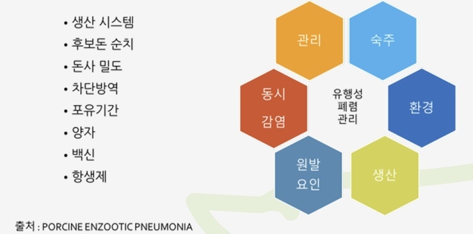시설 측면에서도 공기 여과 시스템과 환기 관리에 많은 투자를 했다. 파리·모기·설치류 유입을 차단하고, 여름철과 겨울철에 맞춘 공기 순환 구조를 통해 공기 질을 일정하게 유지했다. 공기 여과 냉방 차량의 도입은 운송 중 열 스트레스와 질병 전파를 줄이는 수단으로 확산되고 있다. 온도, 습도, 암모니아 농도, 이산화탄소 수준을 정량적으로 관리함으로써, 질병을 유발하지 않는 ‘호흡기 환경’을 조성하는 것을 목표로 하고 있다. 이런 과정들이 농장의 호흡기 질병 관리에 큰 도움이 될 것으로 보인다.
