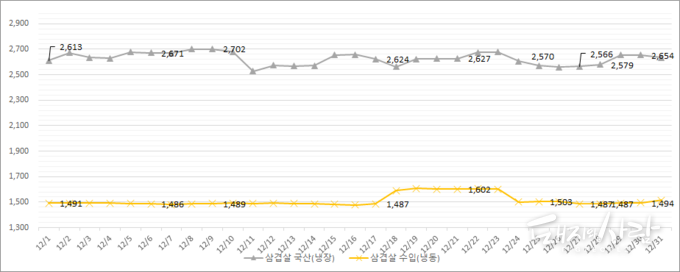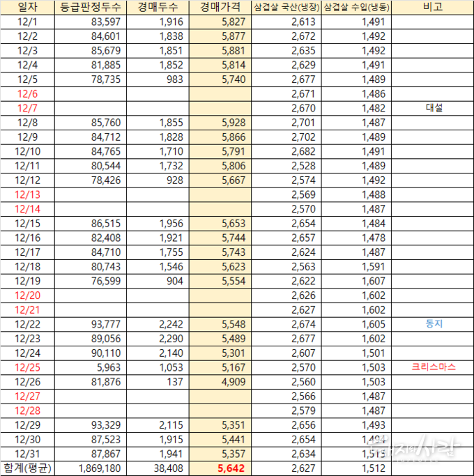 ※ 12월 15일자 주간 돼지고기 시황(출처 한국육류유통수출협회)