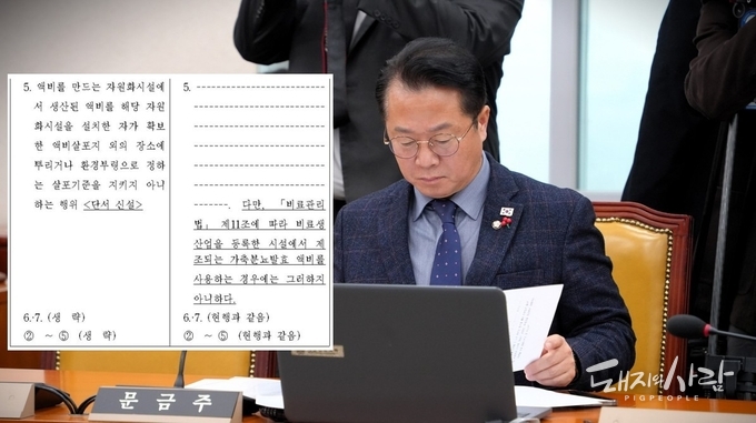 한편 이번 개정안은 한돈협회 이기홍 회장이 자연순환협회장을 역임한 시기부터 중점 추진해 오던 것입니다. 앞서 지난 16일 이 회장은 문금주 의원을 직접 만나 가축분뇨법 개정을 논의한 것으로 파악되고 있습니다.