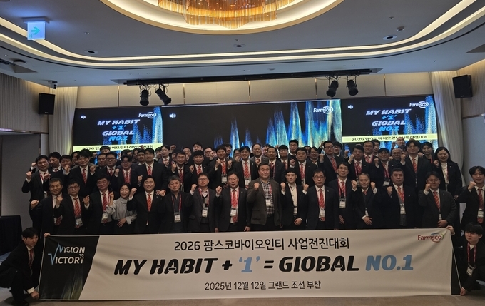 농업회사법인 팜스코바이오인티(대표이사 박점수)가 지난 12일 부산 그랜드 조선 호텔에서 2026년 사업전진대회를 열고 ‘My Habit+1 = Global No.1’을 내년 경영 슬로건으로 내걸었습니다.