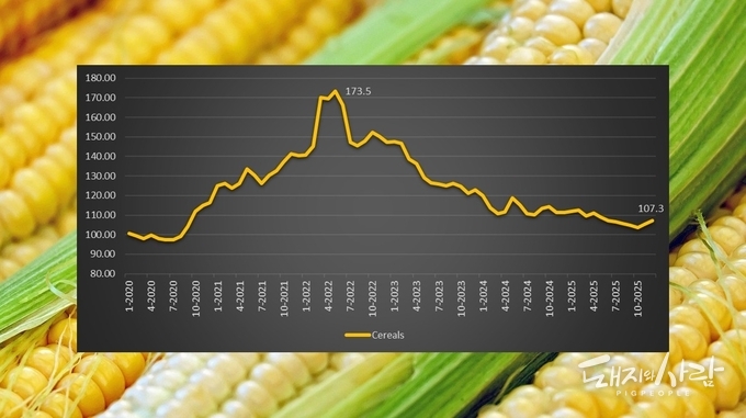 2025년 한 해 동안 FAO 곡물 가격 지수는 107.9포인트를 기록했는데, 이는 2024년 대비 5.6포인트(4.9%) 하락한 수치이며, 2020년 이후 최저 연평균치입니다.