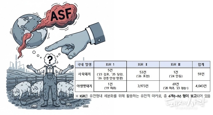중수본은 이번 강릉 ASF 발생이 단일 요인이 아닌, 농장 구조적 취약성과 차단방역 미흡이 복합적으로 작용한 결과로 보고 있습니다. 특히 유전자 분석 결과에서 야생멧돼지에 의한 지역 내 오염 가능성이 낮은 것으로 확인됨에 따라, 사람·차량·물품 등을 통한 인위적 유입 가능성에 무게를 두고 있습니다.