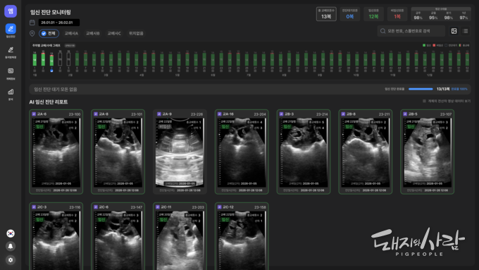 회사에 따르면 '딥소닉'은 재발정 주기(21일) 이전에 AI가 임신 여부를 판단하여 비생산일수를 줄이고, 사고 모돈의 재교배 시기를 앞당기는 데 초점을 맞췄습니다. 기존 25일 전후였던 임신 진단 시기를 AI 분석을 통해 교배 후 20~22일로 앞당겼다는 설명입니다.