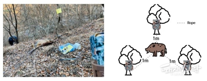 따라서 본 연구는 청소동물이 ASFV의 잠재적 매개체인지 확인하기 위해 수행되었다. 야생멧돼지 사체를 숲 바닥에 방치된 상태에서, 사체 분해 과정의 계절적 패턴과 이를 먹이로 삼는 청소동물의 방문 빈도를 조사했다.