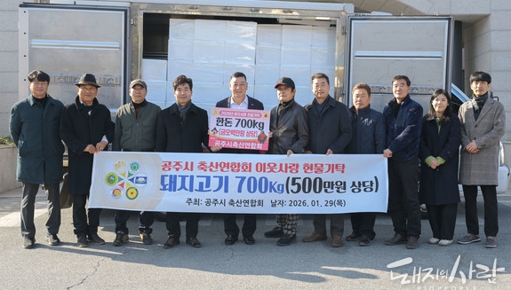충남 공주시는 지난달 29일 시청 상황실에서 공주시 축산인연합회가 설 명절을 앞두고 관내 어려운 이웃을 돕기 위한 한돈 선물세트를 기탁했다고 밝혔습니다.