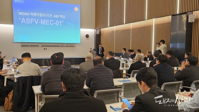 중앙백신연구소는 지난 25일 대전 본사 파천홀에서 ‘ASF 백신 개발 성과 발표회’를 개최하고, 국내 기술로 탄생한 ASF 약독화 생백신 후보주인 ‘MEC-1'의 혁신적인 연구 성과를 상세히 공개했습니다.