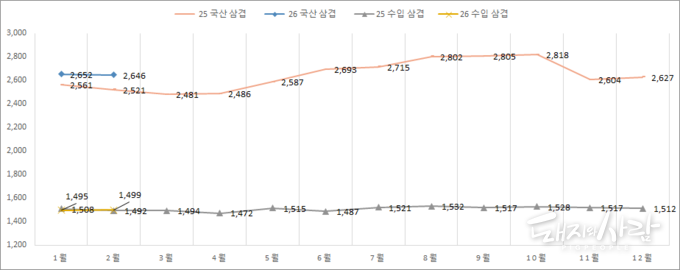 ◆'26년 2월 등급판정두수 및 도매가격, 수입육, 소매가격, 한돈재고동향, 소비자심리지수 요약(업데이트 예정)