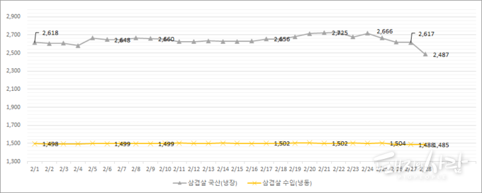 ※ 2월 19일자 주간 돼지고기 시황(출처 한국육류유통수출협회)