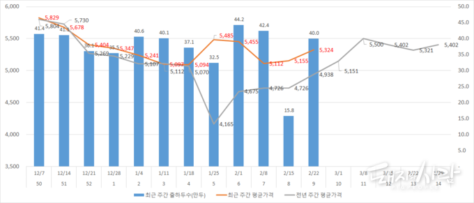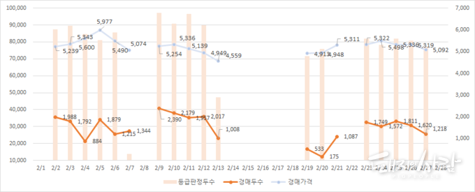 - 경매가격과 경매두수는 등외 및 제주 제외임