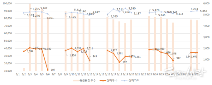 - 경매가격과 경매두수는 등외 및 제주 제외임