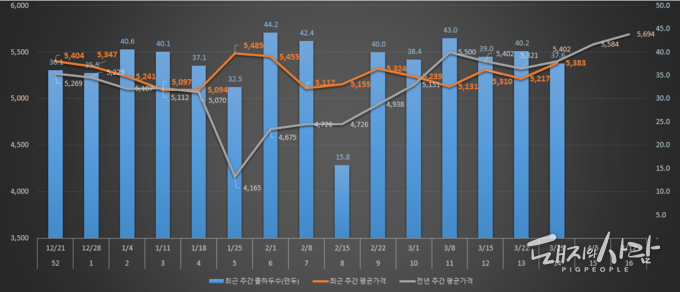 ※ 3월 30일자 주간 돼지고기 시황(출처 한국육류유통수출협회)