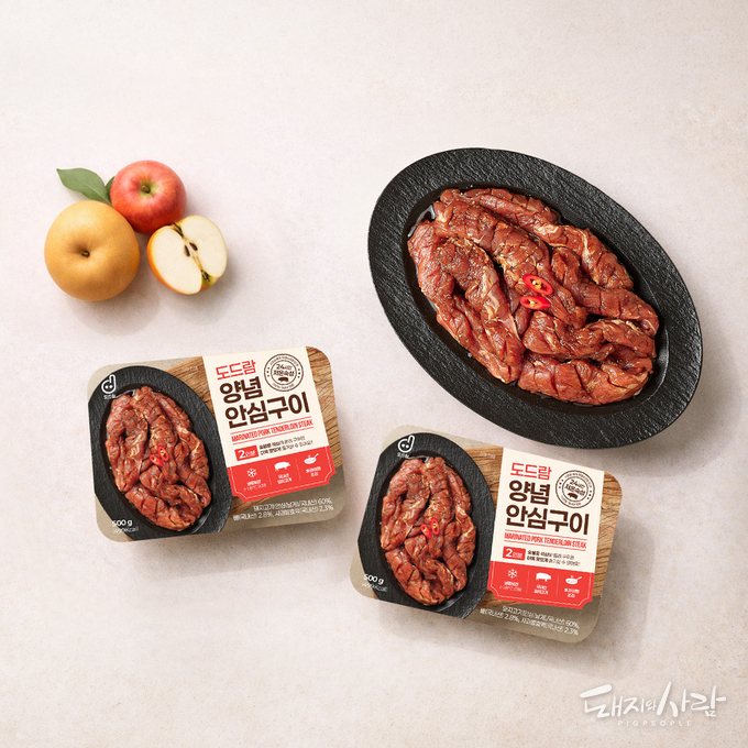 도드람 양념갈빗살구이는 갈비 특유의 맛을 살리면서도 뼈를 제거해 먹기 편리한 ‘순살 갈비’ 형태로 구성됐습니다. 도드람 양념안심구이는 돼지 한 마리에서 소량만 생산되는 특수부위인 끝살(날개살)을 활용해 제품의 프리미엄 가치를 더했습니다.