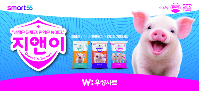 이번 제품은 ASF 확산 이후 제기된 사료 원료 안전성 우려에 대응해 개발된 것으로, 질병 전파 리스크를 낮추면서도 기존 혈장단백을 사용한 자돈 사료 이상의 성장 성능과 면역력을 구현한 제품입니다. ‘지앤이’는 동종 유래 원료를 배제해 농가의 불안 요소를 해소하는 동시에, 우성사료 만의 노하우를 접목한 ‘초정밀 영양 설계’를 통해 이유자돈의 초기 성장과 면역력을 극대화했습니다.