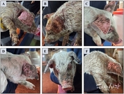 삼출성 표피염(Exudative epidermitis, EE), 즉 ‘기름진 돼지병(greasy pig disease)’은 주로 박리독소(exfoliative toxins, ETs)를 생성하는 독소성 Staphylococcus hyicus 균주에 의해 발생하며, 이 독소는 돼지의 '데스모글레인-1(desmoglein-1; 피부 세포를 서로 단단히 붙잡아 주는 접착 단백질)'을 표적으로 작용해 어린 돼지에서 특징적인 피부 병변을 유발한다. 다른 국가에서는 Staphylococcus chromogenes와 Staphylococcus sciuri 등 비-hyicus 포도상구균도 EE 임상 사례와 연관된 것으로 보고된 바 있으나, 국내에서는 이러한 사례가 보고된 적이 없다. 본 연구에서는 산발적 발생(농장 A)과 상재적 발생(농장 B)을 보이는 국내 두 양돈농장을 대상으로 EE의 원인 세균을 규명하기 위해 조사하였다. 총 6개의 조직 스크래핑 시료(농장 A 2건, 농장 B 4건)에서 5종의 포도상구균이 분리되었으며, 각각 Staphylococcus chromogenes(n=3), Staphylococcus haemolyticus(n=3), Staphylococcus